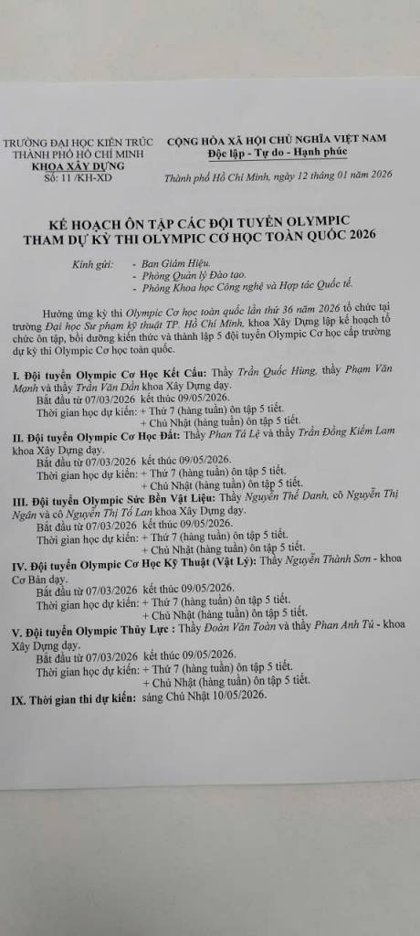 Kế hoạch ôn tập các đội tuyển Olympic 2026
